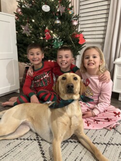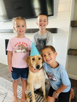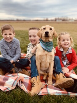 As soon as we finally got to the house, one little yellow lab puppy came running up to my kids wanting to play. She was the last puppy left and it was meant to be. She instantly became a sibling to my three kids.