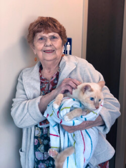 Now I’m back with my Mom, racing up my cat tree, gobbling my treats, sitting on her lap and snuggling close in bed. I was so worried that I’d have to leave her just like her son did and I knew she’d be lost without me. But here we still are…the perfect kitty-approved family!