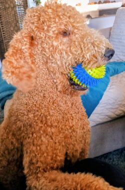 She can’t play too good so I play for her and make her smile.  See, I love my mom.  And I love my ball.  I keep it with me ALWAYS.  I bounce it, I carry it.  I hide it & then go find it.  I throw it to myself.  There isn’t anything my ball and I can’t do!