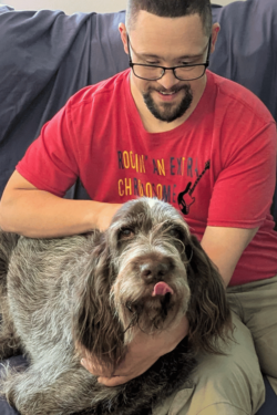 Hi! My name is Rosie. I am the luckiest dog in the world! I get to spend my time doing whatever is needed for my Dad. Humans call him “Down’s” and “autistic” and say he has “anxiety,” “depression,” and “panic attacks.” I simply call him PERFECT. Our family has had 10 special kids, but Dad is my best friend.