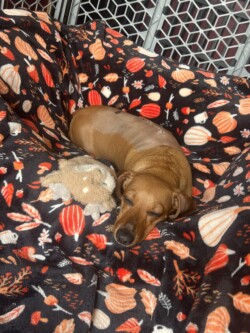 Mom never gave up on me. She took me home and fed me with a syringe. Day after day she was there for me. After a long time, I got healthy again. By then I looked like a normal dachshund so my name got shortened to just T. We wanted to stay together in the worst way. But I had to go back to the store cuz Mom couldn’t afford to buy me.